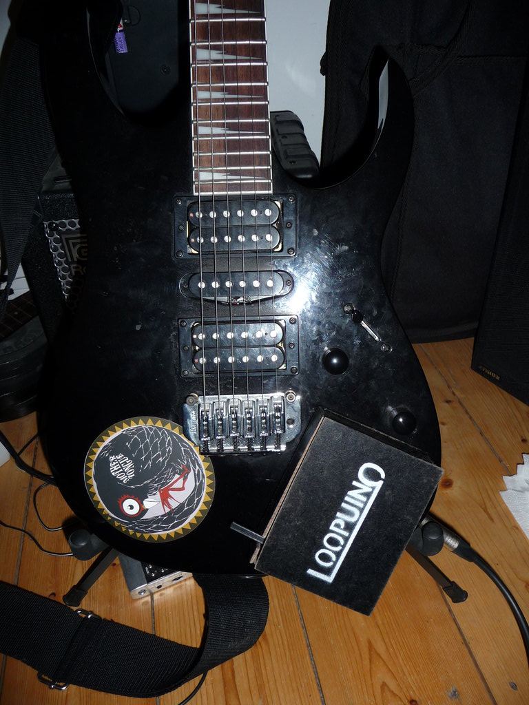 The second (wire-less) controller can for example be attached to a guitar. It also features a row of LEDs to show the current bar of the loop. Several loops can be “stacked” and the playback can even be reversed, which creates some interesting sounds.